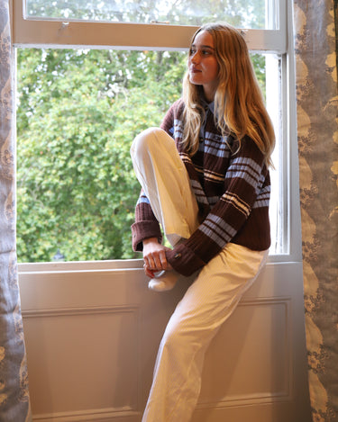 White & Yellow Pinstripe Trousers - Pre-Loved